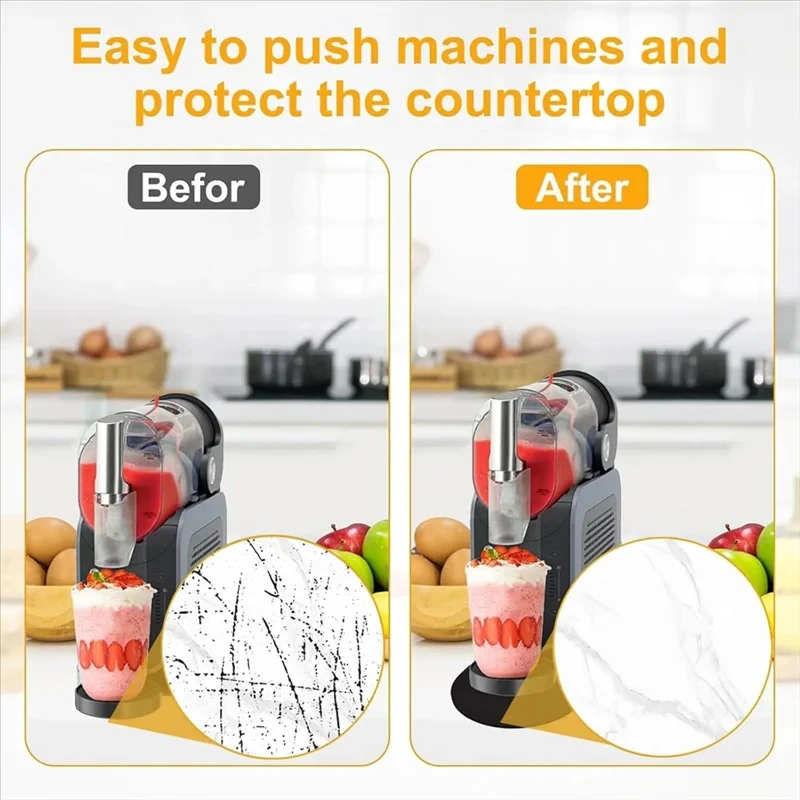 Enhanced Quality Material: Crafted to shield your countertops from potential scratches and abrasions, this sliding mat not only preserves your surfaces but also facilitates effortless repositioning of for your Ninja slushie machine. Its robust design ensures smooth gliding across various surfaces, making it a practical addition to your kitchen arsenal.Custom Fit for Ninja Models: Precisely tailored for for Ninja Frozen Drink Machines FS301 and FS300, this sliding pad guarantees a snug fit and stable base, enhancing the machine's performance. It's engineered to accommodate the specific dimensions and weight of for Ninja appliance, ensuring optimal functionality and ease of use.User-Friendly Design: Featuring a dual-sided construction with a non-slip layer to grip the machine and a smooth layer to contact the counter, this mat simplifies the process of moving heavy appliances. Just place your slushie machine on the mat for a secure, slideable setup that prevents strain and effort.Ideal Gift Choice: Perfect for anyone who loves to entertain or enjoys homemade slushies, this sliding pad is a thoughtful and practical gift. It assists in effortlessly moving the slushie machine, saving space and maintaining a neat kitchen environment, making it a favorite among home bartenders and party hosts.size: 500 x 197 x 3MMColor: BlackMaterial: rubberPackage Contents:1 * Smoothie Maker Mat